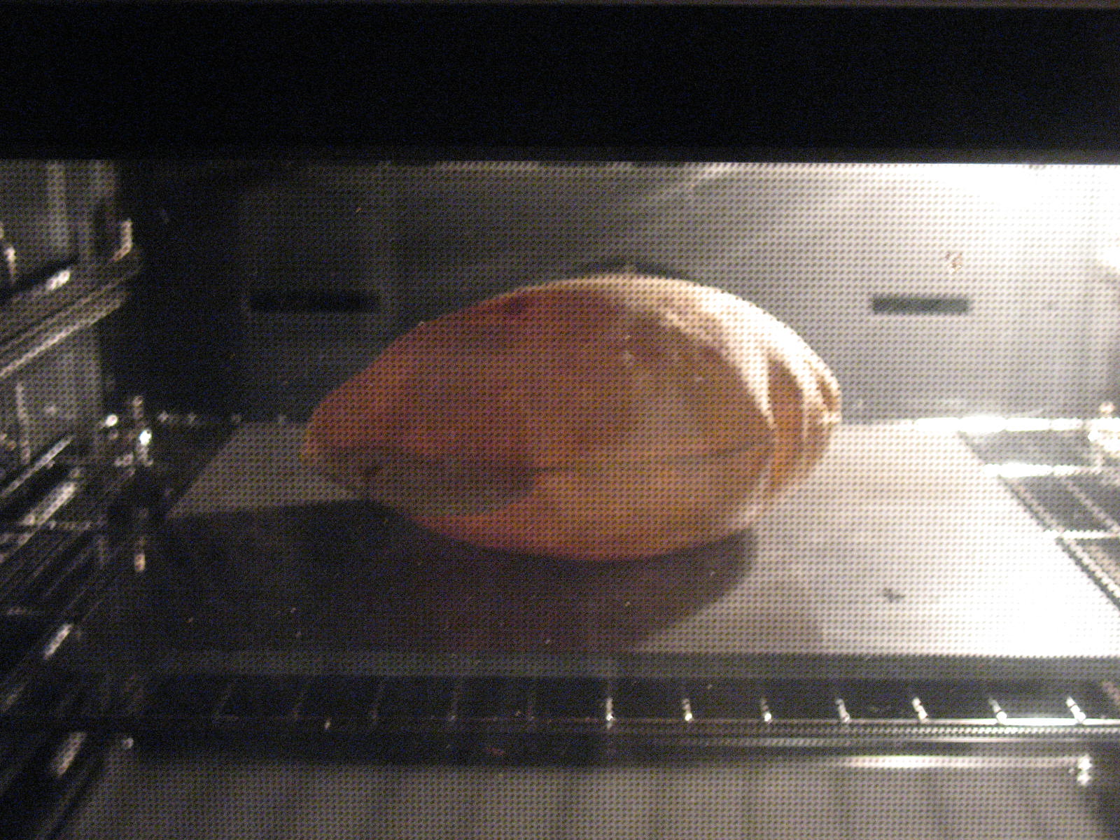 9. The roti begins to fluff up in a few seconds after its in the oven. Observe the color. It should turn golden brown.